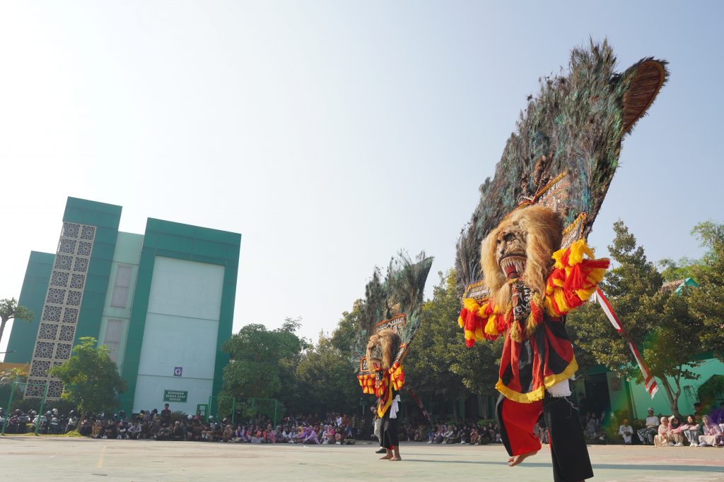 Selesai upacara, dilanjutkan dengan penampilan atraksi Reog yang seluruh personilnya adalah siswa MAN Kota Surabaya. Penampilan atraksi reog, sangat menarik bagi siswa. Dengan iringan musik yang cukup menghidupkan suasana, atraksi tarian reog sangat dinikmati oleh seluruh warga MAN Kota Surabaya. Seluruh personel reog adalah siswa laki-laki kelas XII. Mereka semua masih aktif belajar dan menjadi siswa di MAN Kota Surabaya. Dengan mengenakan busana reog serta aneka topengnya, mereka beratraksi di tengah halaman sekolah. Ada siswa yang mengenakan topeng harimau yaitu topeng yang menyerupai harimau dengan bulu ekor merak. Ada yang mengenakan topeng bujang ganong, yaitu topeng dengan wajah merah, mata besar melotot, dan kumis tebal. Ada yang mengenakan topeng kelana sewandono yaitu topeng wayang yang menggambarkan wajah merah, mata besar melotot, kumis tipis dan rambut panjang. Semua tokoh – tokoh reog itu, diperankan oleh siswa.