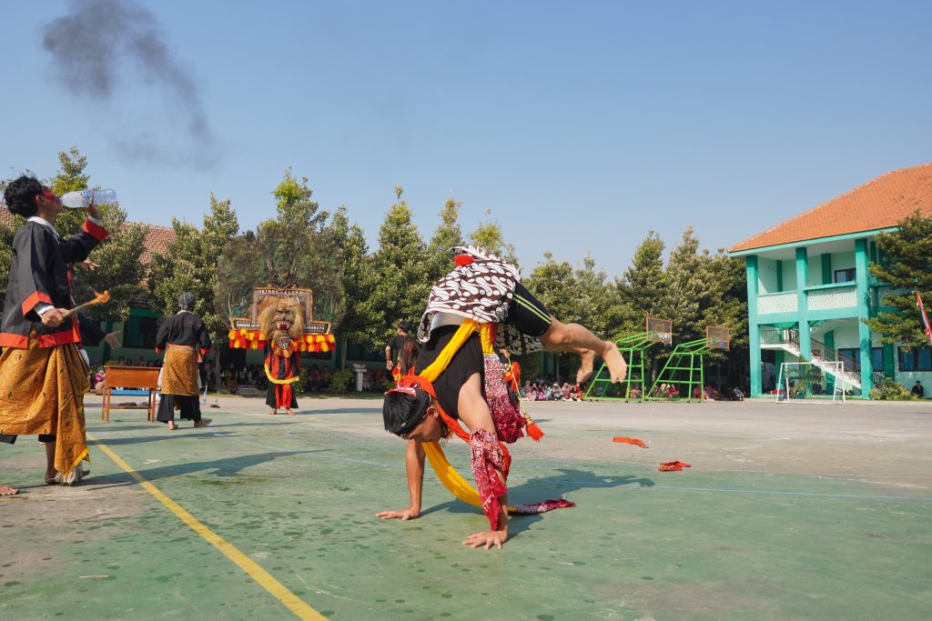 Singa Barong, salah satu tokoh utama yang muncul dalam tarian reog berupa topeng besar berbentuk kepala singa yang dipakai oleh salah satu pemain. Singa Barong berupa topeng besar pada atraksi saat itu, dibawa oleh dua orang siswa. Perlu energi yang besar untuk membawa topeng Singa Barong tersebut. Sebelum tampil, anak -anak ini berlatih dulu.
