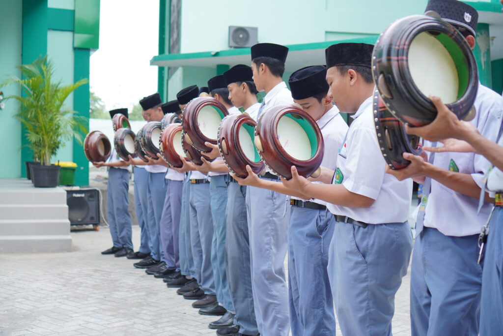 (Siswa-siswa dari Tim Al Banjari MAN Kota Surabaya saat menyambut kedatangan Bapak Kepala Kantor Kementrian Agama Provinsi Jawa Timur beserta jajaran pejabat lainnya)