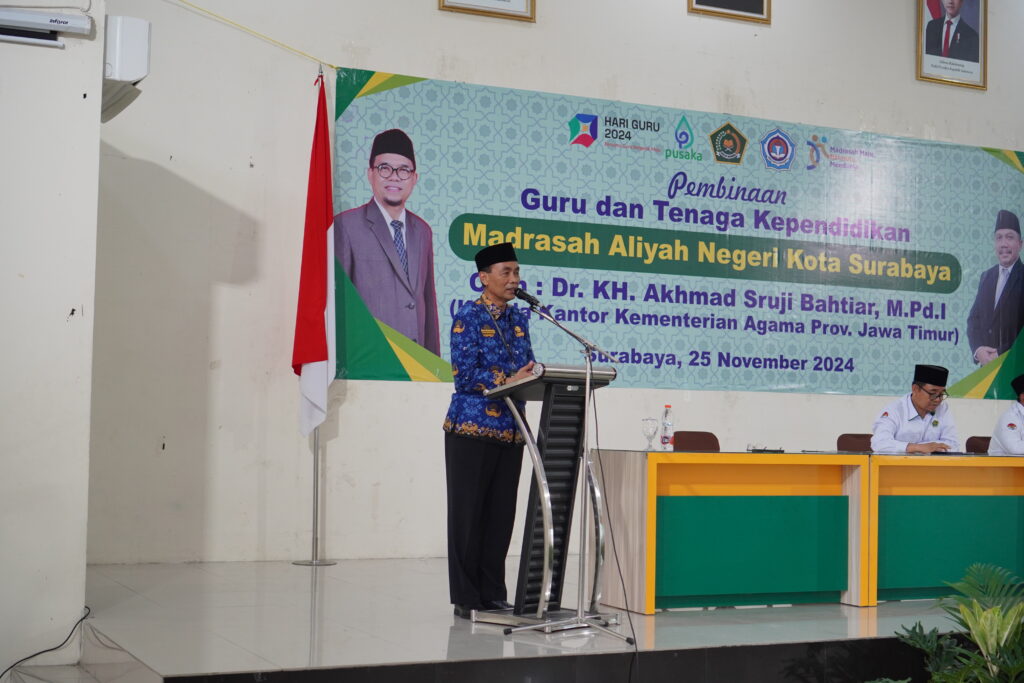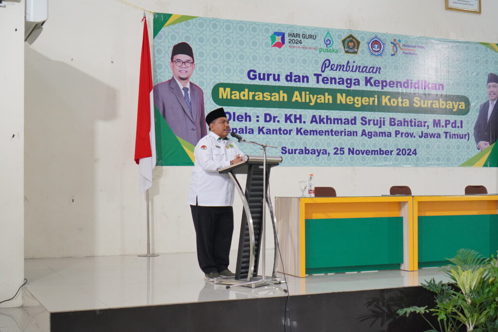 Setelah itu, acara dilanjutkan dengan pembinaan oleh Kepala Kantor Kementrian Agama Provinsi Jawa Timur, Bapak DR Ahmad Sruji Bahtiar MA kepada guru – guru MAN Kota Surabaya serta perwakilan guru dan pejabat di lingkungan MA dan pengawas RA, MTs, MA se Kota Surabaya. Acara ini dibuka dengan sambutan kepala madrasah, Bapak Drs Fathurahman M.Pd.