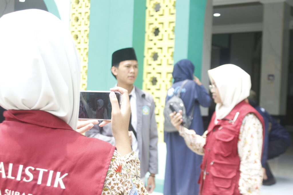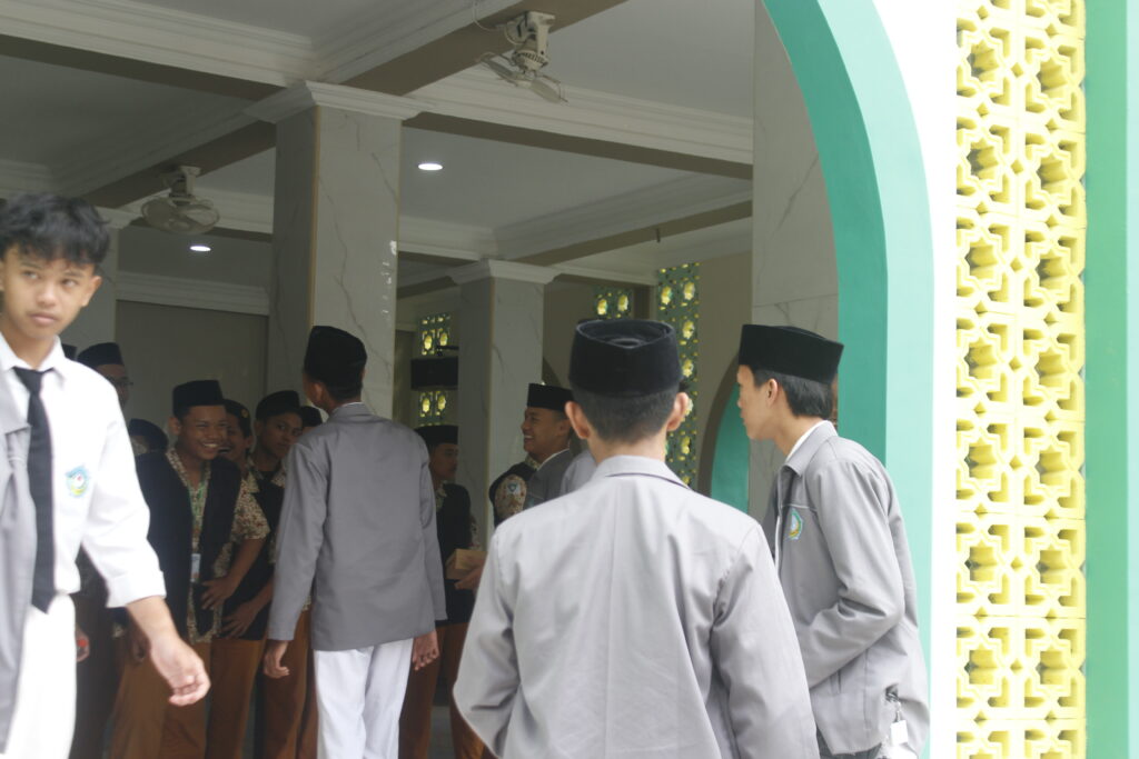 (Bersahaja. Anggota takmir-takmkroh masjid Kanjul Hikmah MAN Kota Surabaya menyambut kedatangan para tamu dengan ramah, baik dan bersahaja)