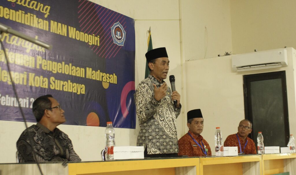 “MAN Wonogiri adalah madrasah satu satunya di Wonogiri, sama dengan MAN Kota Surabaya. Kami datang untuk belajar. Mohon disampaikan tentang bagaimanakah pengembangan MAN Kota Surabaya. Termasuk juga mohon berkenan menyampaikan kepada kami trik perkembangan anak anak yang masuk di PTN. Tahun 2022, OSN yang menjuarai Jawa Timur dan tahun 2024 juaranya juga dari Jawa Timur. Dari Jawa Tengah belum ini. Oleh karena itu, mohon disampaikan kepada kami tentang pengembangan MAN Kota Surabaya,” kata Bapak Drs. H. Muslih, M.Pd kepala MAN Wonogiri dalam salah satu sambutannya.