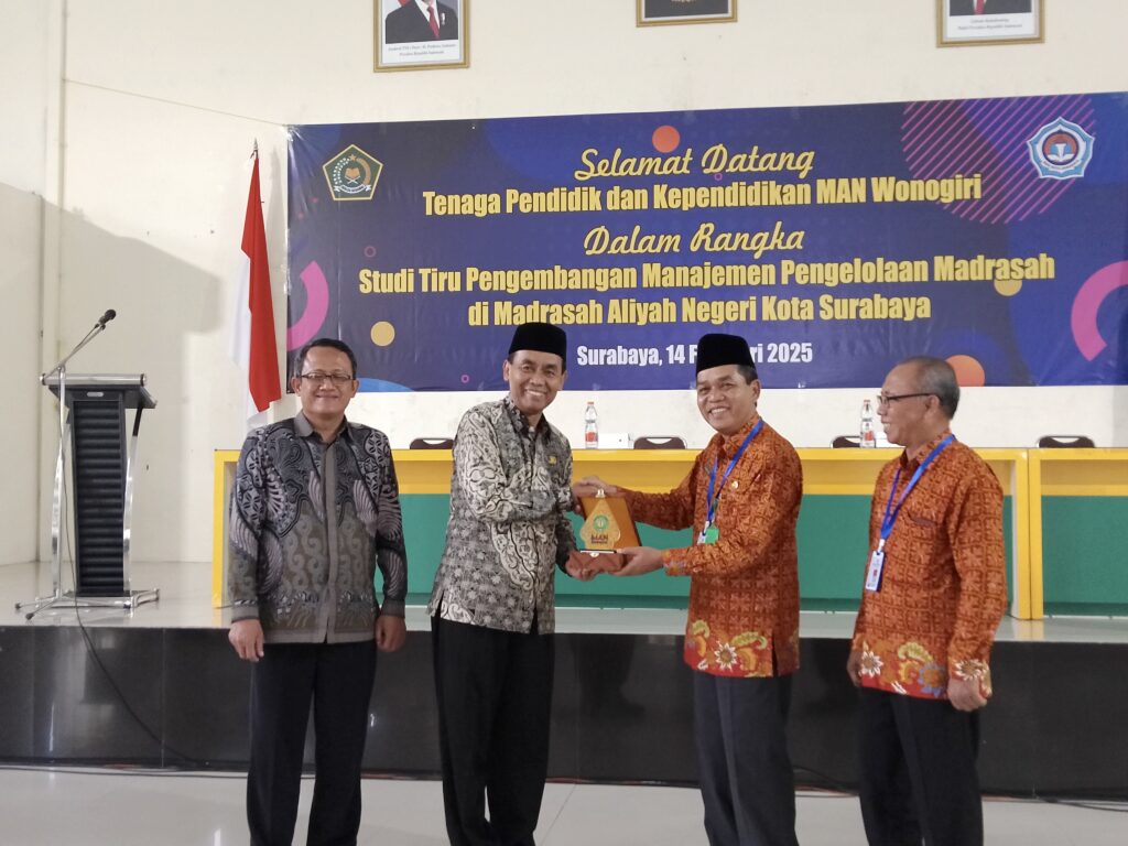 Pada acara studi tiru ini, MAN Kota Surabaya menyerahkan sebuah cenderamata sebagai kenang-kenangan untuk MAN Wonogiri dilanjutkan dengan sesi tanya jawab untuk saling berbagi informasi.