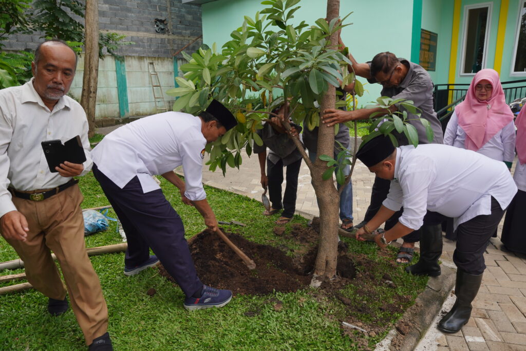 (Surabaya – MAN Kota Surabaya) Menanam pohon adalah bagian dari penghijauan. Kegiatan ini merupakan upaya memelihara lingkungan di suatu area, seperti taman, kebun, atau lahan kosong. Gerakan penghijauan dengan menanam pohon, menjadi pilar utama untuk meningkatkan kualitas lingkungan. Tentu saja, hal tersebut menjadi salah satu upaya melindungi bumi dari pengaruh dinamika perubahan iklim yang semakin masif.