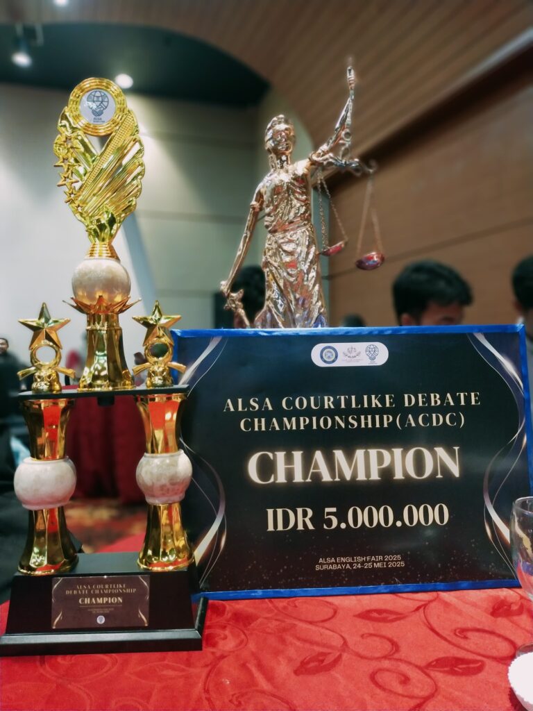 Selama dua hari penuh, ajang bergengsi ALSA Courtlike Debate Championship (ACDC) sukses digelar dan menjadi panggung pertukaran argumen berdasarkan hukum bagi para peserta yang hadir. Kompetisi yang berlangsung intens pada Sabtu 24-Mei-2025 sampai Minggu 25-Mei-2025 di Universitas Airlangga ini mempertemukan puluhan tim debat dari sekolah lain yang bersaing dalam simulasi sidang peradilan dengan format khas ACDC.