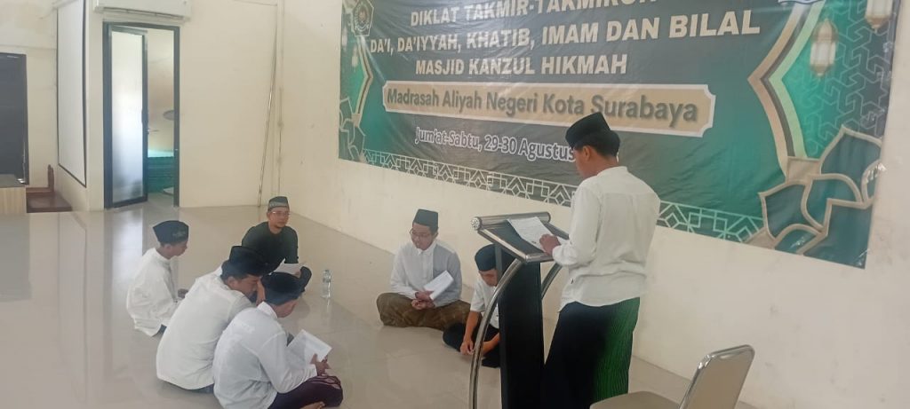 Diklat Takmir dan Takmiroh dibuka oleh Bapak Muhammad Suwar M.Pd, Waka Kesiswaan MAN Kota Surabaya, kemarin, Jum’at pada 29 Agustus 2025.
