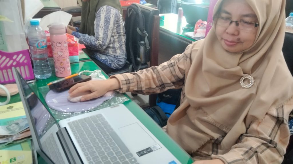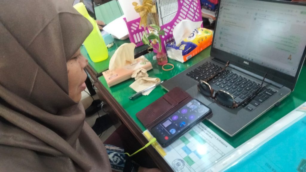 Ibu Insa Asyaroh, guru Al Qur an Hadist, melakukan pembelajaran daring