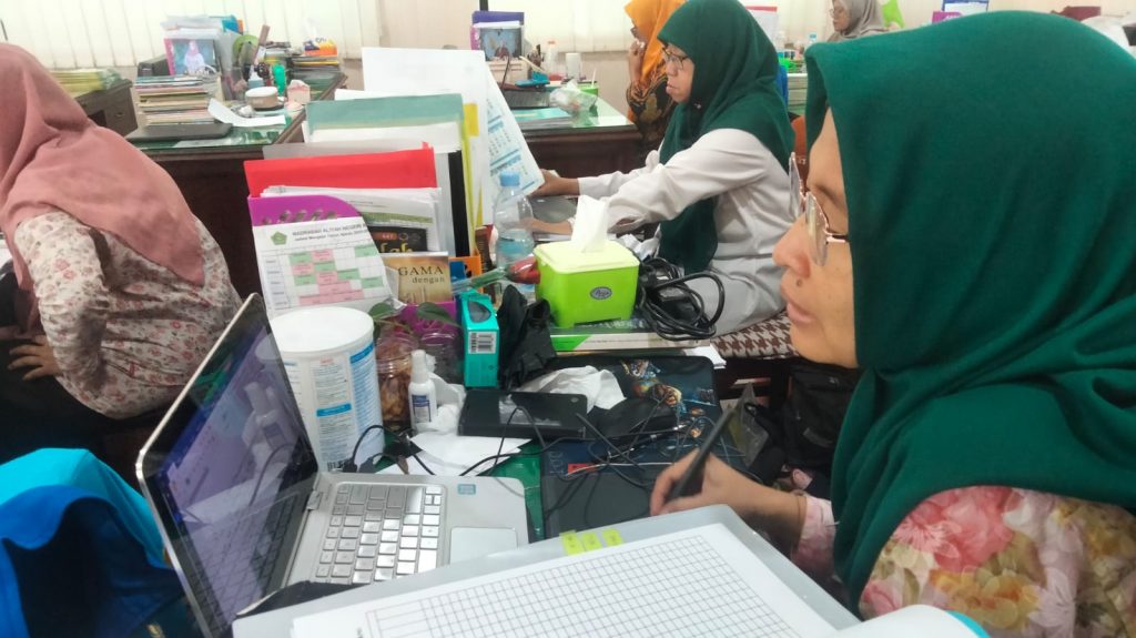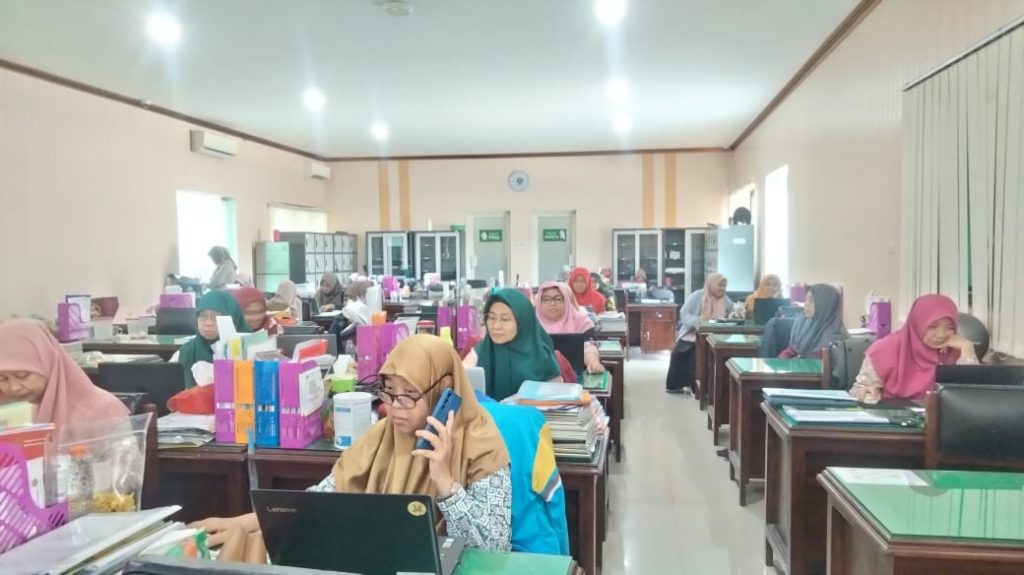 Situasi di ruang guru, para guru MAN Kota Surabaya, aktif melakukan pembelajaran daring.